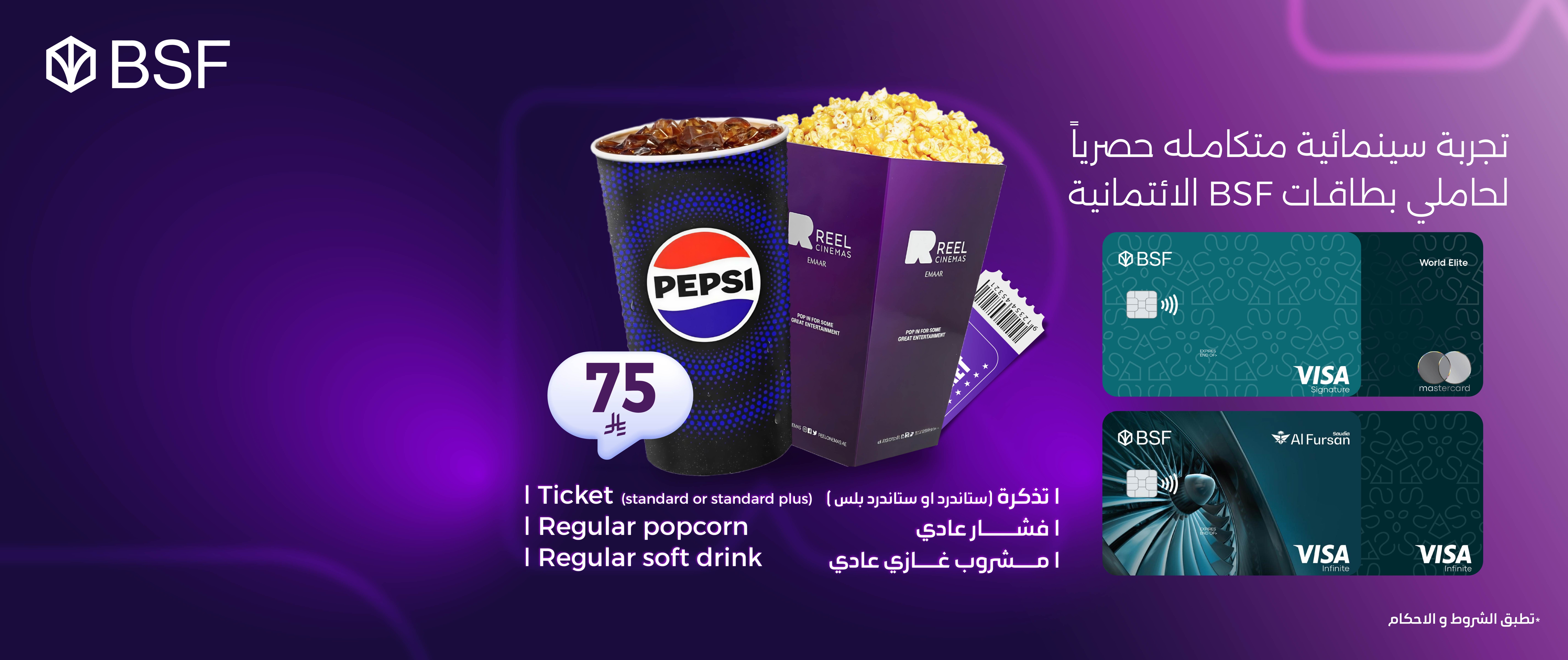 (1Standard or Standards plus + 1 Regular popcorn + 1 Regular soft drink ) for all credit card holders (Visa & Mastercard) all for 75 SAR